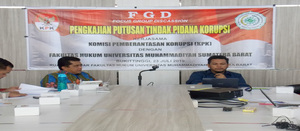 FOCUS GROUP DISCASSION (FGD) dengan Tema "Pengkajian Putusan Tindak Pidana Korupsi" kerjasama Komisi Pemberantasan Korupsi (KPK) dgn FH-UMSB.
