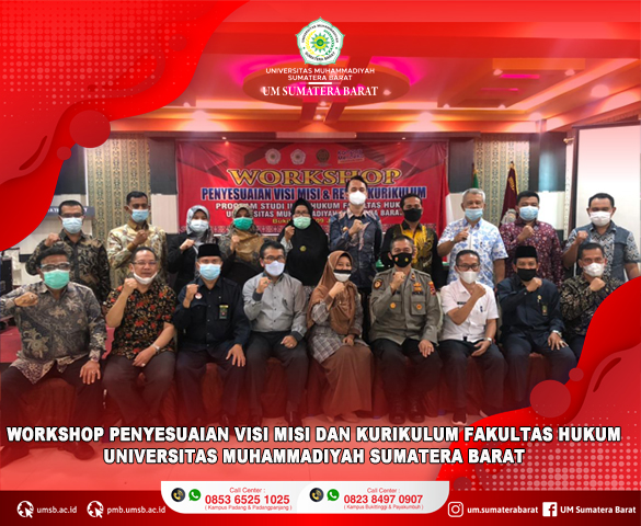 FAKULTAS HUKUM UM SUMBAR- Fakultas Hukum Universitas Muhammadiyah Sumatera Barat adakan workshop penyesuaian visi misi dan kurikulum, Rabu 09 Juni 2021 di Convention Hall Yunahar Ilyas Kampus III UM Sumbar Bukittinggi.