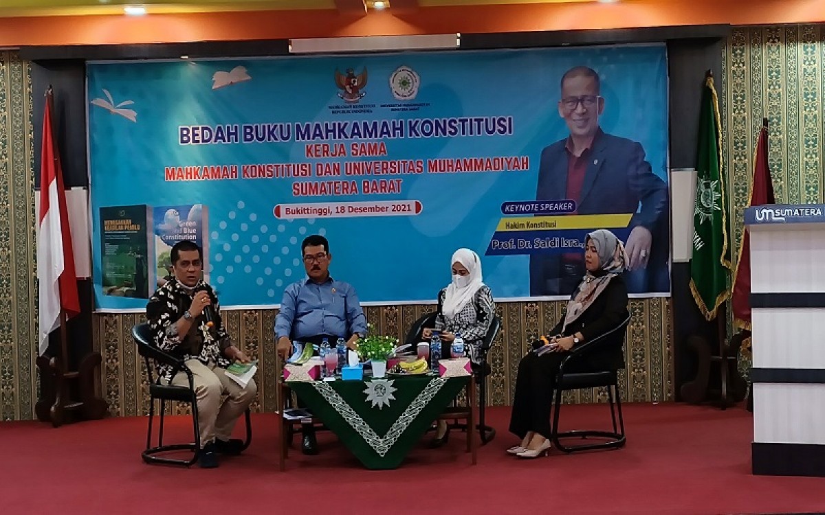 Fakultas Hukum UM Sumbar- Sabtu, 18 November 2021 Fakultas Hukum Universitas Muhammadiyah Sumatera Barat gelar Bedah Buku keluaran Mahkamah Konstitusi Republik Indonesia di Convention Hall Yunahar Ilyas Kampus III UM Sumbar.