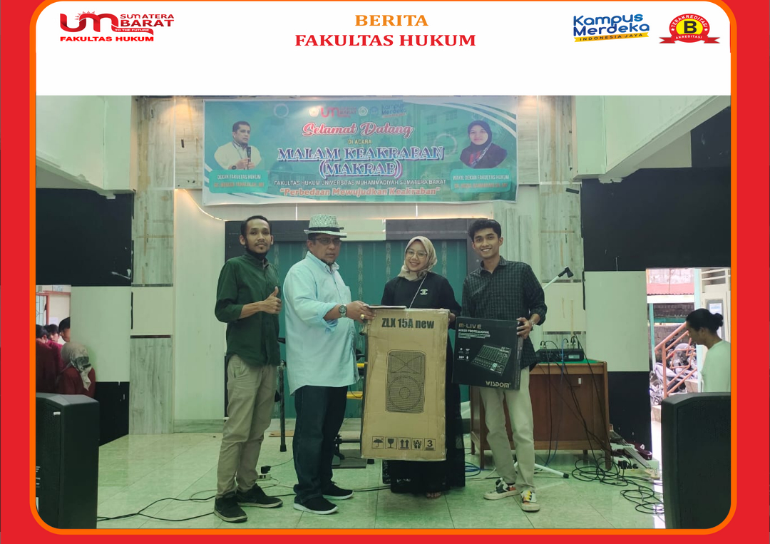 Dekan fakultas hukum UM Sumbar Dr.Wendra Yunaldi, MH yang menerima dan menyaksikan langsung serah terima barang ini mengucapkan terimakasih atas sumbangan ini dan berharap dapat bermanfaat untuk menunjang kegiatan positif bagi mahasiswa Fakultas Hukum. “Alat musik ini bukan milik BEM bukan Juga milik UKM Seni, namun ini milik mahasiswa dimana siapa saja dapat memanfaatkannya selama masih dalam batas kewajaran dan bertanggung jawab” ucap beliau