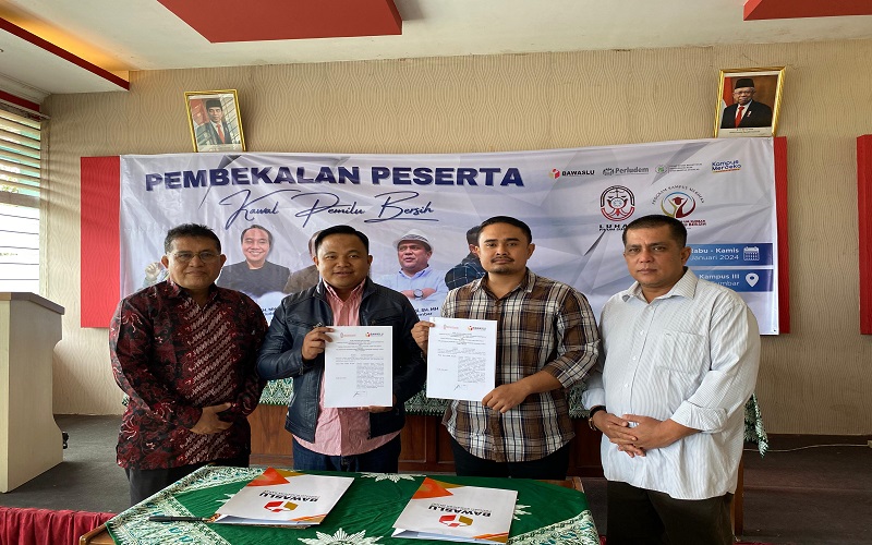 Kemudian acara ditutup dengan penandatanganan kerja sama antara LuHak FH UM Sumbar dan Bawaslu Provinsi Sumatera Barat.